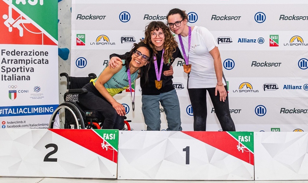 Nella categoria B1 femminile l’oro è andato a Nadia Bredice con la guida Sonia Cipriani (Arco Climbing), argento per Giulia Buonaiuto con la guida Giorgio Tuscolano (Disabili Roma 2000) e bronzo per Silvia Parente con la guida Andrea Cherubini (Adrenaline).