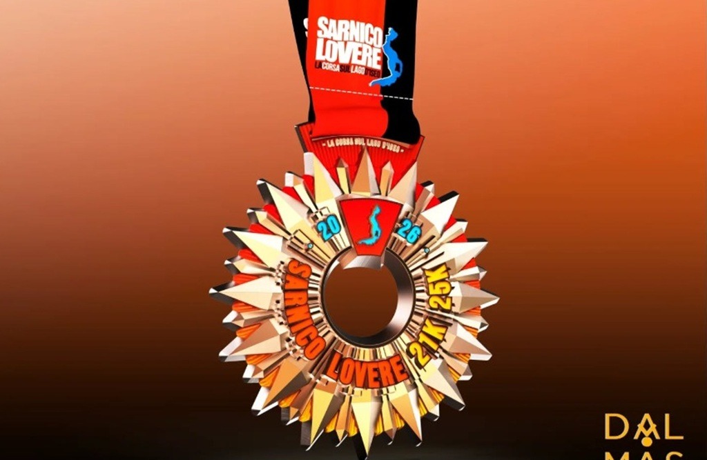 LA MEDAGLIA – Da sempre un cadeau che i runner si guadagnano con il proprio sudore, la medaglia della Sarnico-Lovere è un vero e proprio gioiello a forma di rosone nel quale sono incisi le distanze, 21 e 25 k, il nome dell’evento, nei suoi colori, e una stilizzazione del Lago d’Iseo oltre alla data.