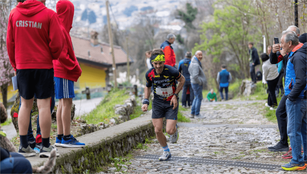 In un’atmosfera dal sapore irlandese, il portacolori dell’A.S.D. Pegarun-Pegacross ha tagliato il traguardo in 6’42” anticipando Ugo De Vos (AMR Angolo Mountain Running, 7’07”) e Simone Guerini (Gruppo Alpinistico Vertovese, 7″11).