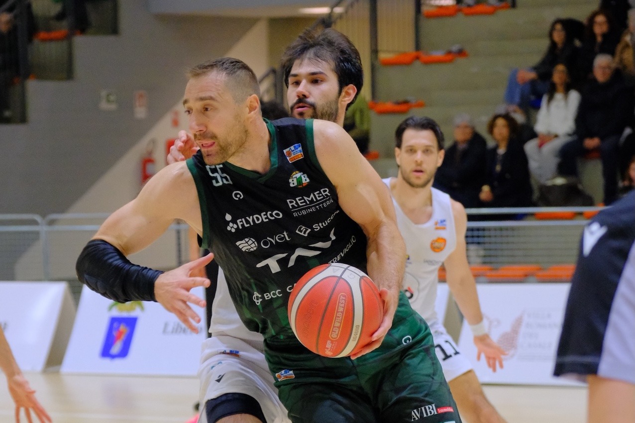 A campi invertiti, Markovic e Lepichev fanno ancora la voce grossa colpendo dai 6,75 e ristabilendo un margine di ampia sicurezza: 50-29 al 22′. Anche Rubbini è costretto a dare forfait anzitempo per una forte contusione al ginocchio sinistro. Aggrappandosi alla superiorità a rimbalzo, la TAV evita il tracollo; Marciuš trova qualche spiraglio nel pitturato e Restelli mantiene una buona percentuale. Quando anche Morina e Agostini vedono meglio il canestro, è la panchina Siaz a fermare l’inerzia del match, passata leggermente nelle mani dei biancoverdi: 54-38 al 27′. Restelli firma anche il -13, prima del 59-44 con cui si chiude la terza frazione.
