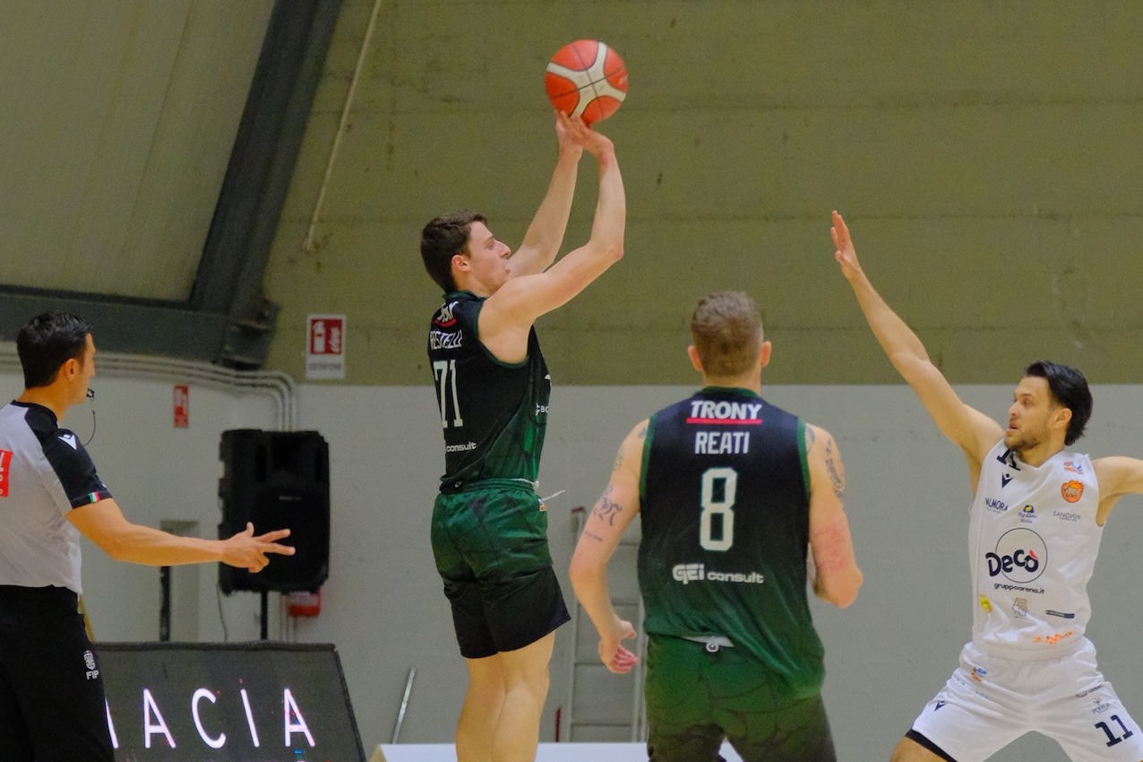 Con i primi punti di Marciuš, la TAV dimezza il passivo (23-14 all’11’), Restelli sbaglia il libero aggiuntivo (25-16 al 13′) e sui biancoverdi cala di nuovo il buio. Piazza Armerina costruisce un parziale di 12-0 in 4 minuti, poi la tripla di Portannese (18′) dilata il margine sino a +22: 40-18. Treviglio prova a reagire e chiude la frazione con tre azioni pesanti (Reati da tre, Restelli 2+1 e tripla) e il gap si riduce solo parzialmente: 42-27 all’intervallo lungo.