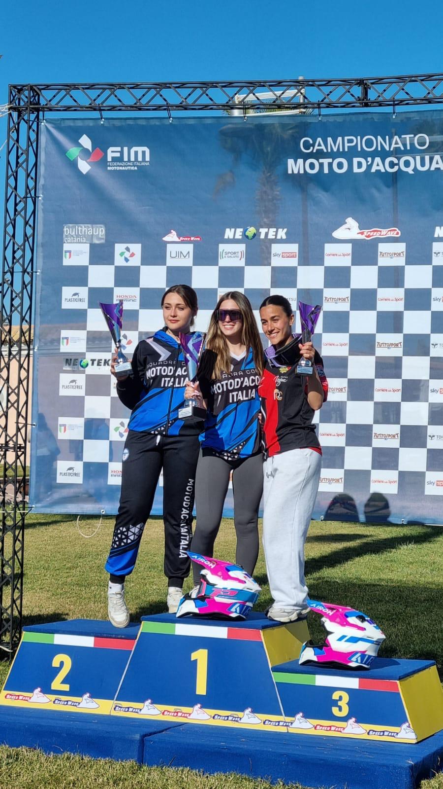 Grande soddisfazione anche nella F4 Femminile, dove Moto d’Acqua Italia ha letteralmente dominato la scena: Aurora Filiberti ha conquistato il 1° posto, seguita a pari punti dalla compagna di squadra Nicole Cadei, che ha chiuso con un eccellente 2° posto, firmando una splendida doppietta per i colori lombardi.