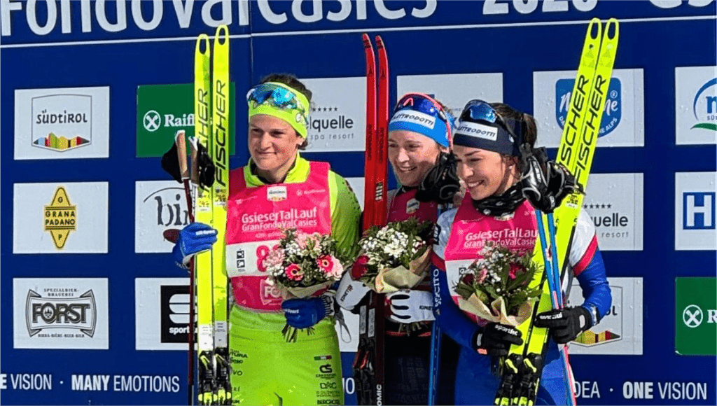 La friulana si è imposta in 1h41’59” anticipando di due secondi l’altoatesina, mentre Bellini ha concluso con trenta secondi di ritardo.