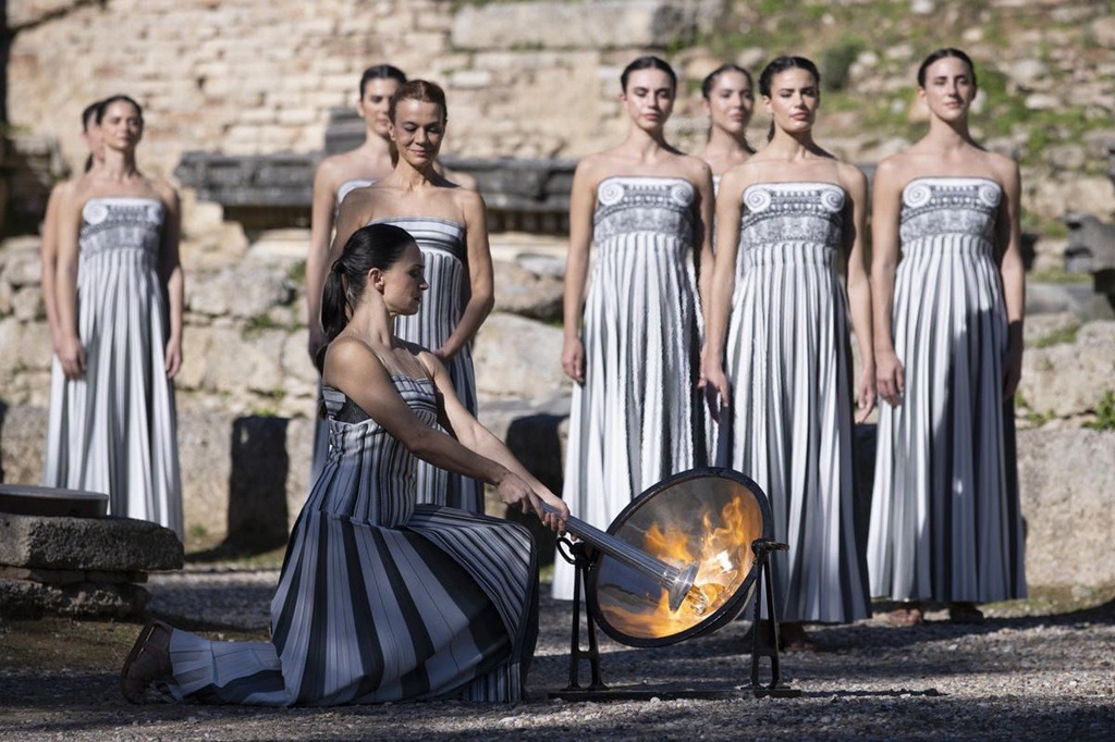 Un momento emozionante è stato segnato dal discorso del Presidente del Comitato Olimpico Ellenico, Isidoros Kouvelos, che ha preceduto l’accensione ufficiale della fiamma. Seguendo il rito ancestrale e grazie ai raggi del sole, la fiamma olimpica è stata accesa presso il Tempio di Hera ed è poi giunta nelle mani della Gran Sacerdotessa Mary Mina e delle altre sacerdotesse. A riceverla come primo tedoforo è stato Petros Gkaidatzis, medaglia di bronzo a Parigi 2024 nel canottaggio doppio pesi leggeri.