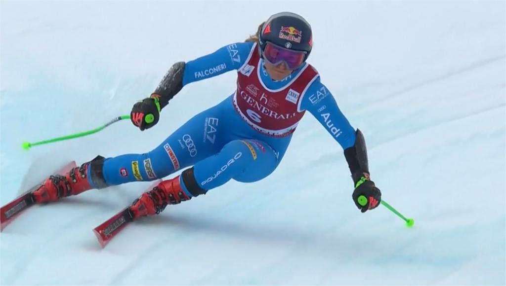 La campionessa azzurra ha anticipato di quindici centesimi la neozelandese Alice Robinson e di trentasei l’americana Lindsey Vonn avvicinandosi nuovamente alla vetta della classifica di specialità.